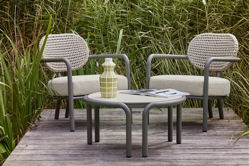 Venkovní stylová nízká křesla a konferenční stolek Lugano Lounge od Apple Bee.