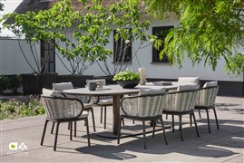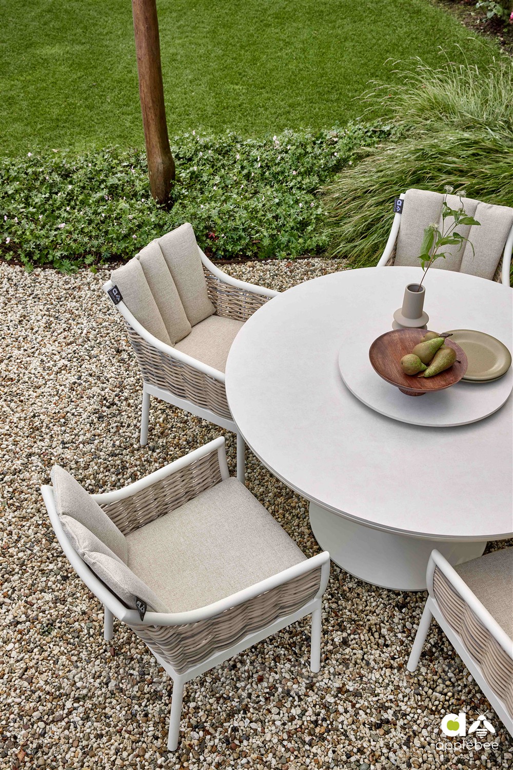 Kulaté a oválné venkovní jídelní stoly Melville s klasickou i sníženou výškou od Apple Bee.