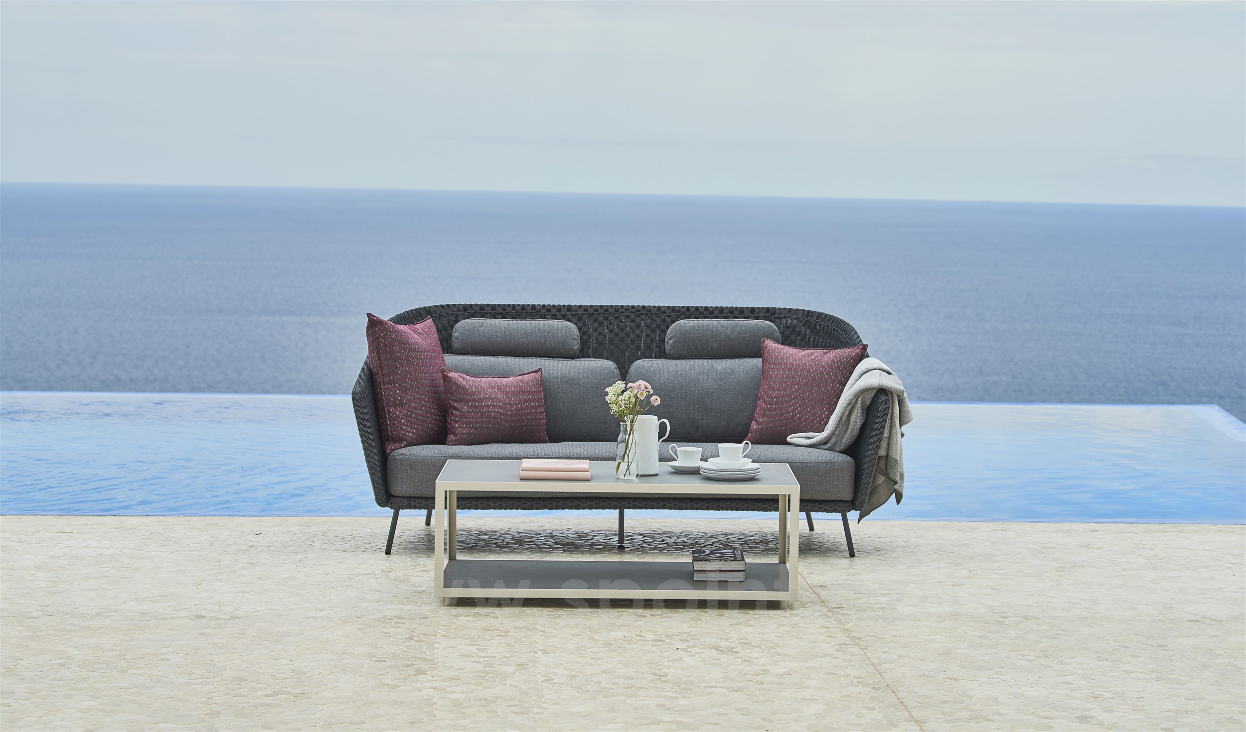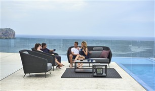 Komfortní venkovní sedací nábytek Mega značky Cane-line. Lze kombinovat s jídelním