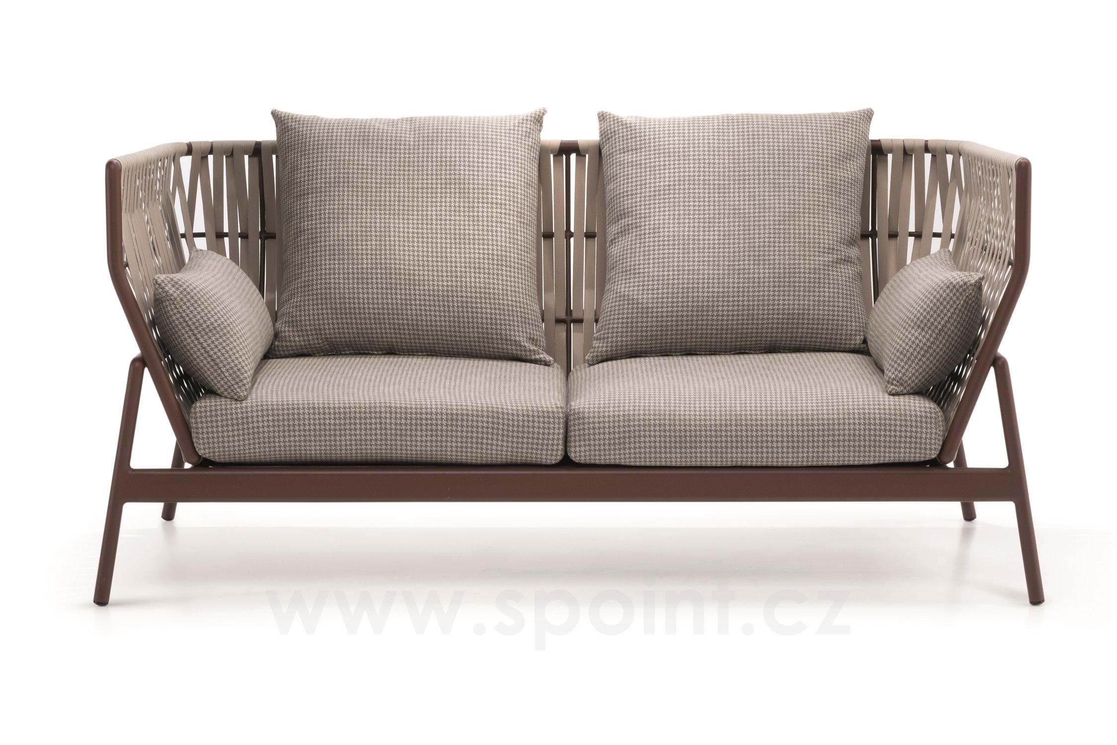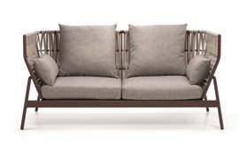 Sleva 50% - Hliníková 2-místná pohovka Piper, Roda, 194x97x69 cm, hliník, lakování rust, pásový výplet modrý, včetně sedáku a dekoračních polštářů