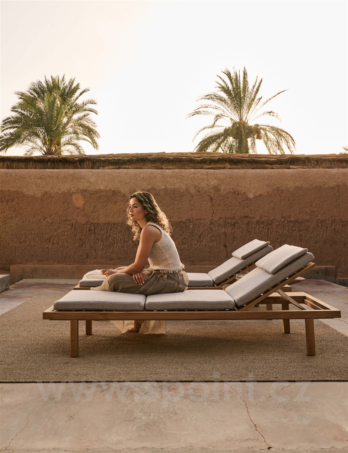 Toto lákavé lehátko je k dispozici ve 3 verzích: s pevnými dřevěnými nohami a bez nich a ve verzi s extra nohou, která je diskrétně vybavena integrovanými kolečky, což umožňuje snadnou mobilitu. Pohodlný výrazný polštář poskytuje luxusní zážitek z odpočinku.