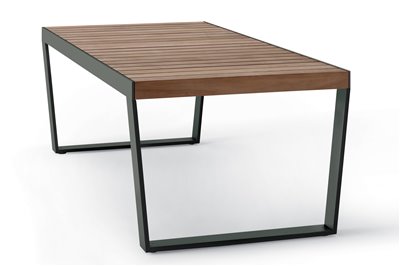 Kolekce Spinnaker značky Roda. Kolekce obsahuje rozkládací jídelní stůl, který má rám z lakované nerezové oceli a deska stolu je teaková.