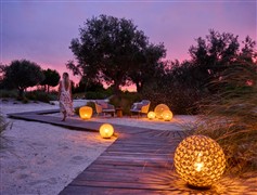 Venkovní designová světla Monsieur Tricot značky Tribu. V nabídce v několika barvách. Lze ovládat mobilní aplikací nebo manuálně přes tlačítko na svítidle.