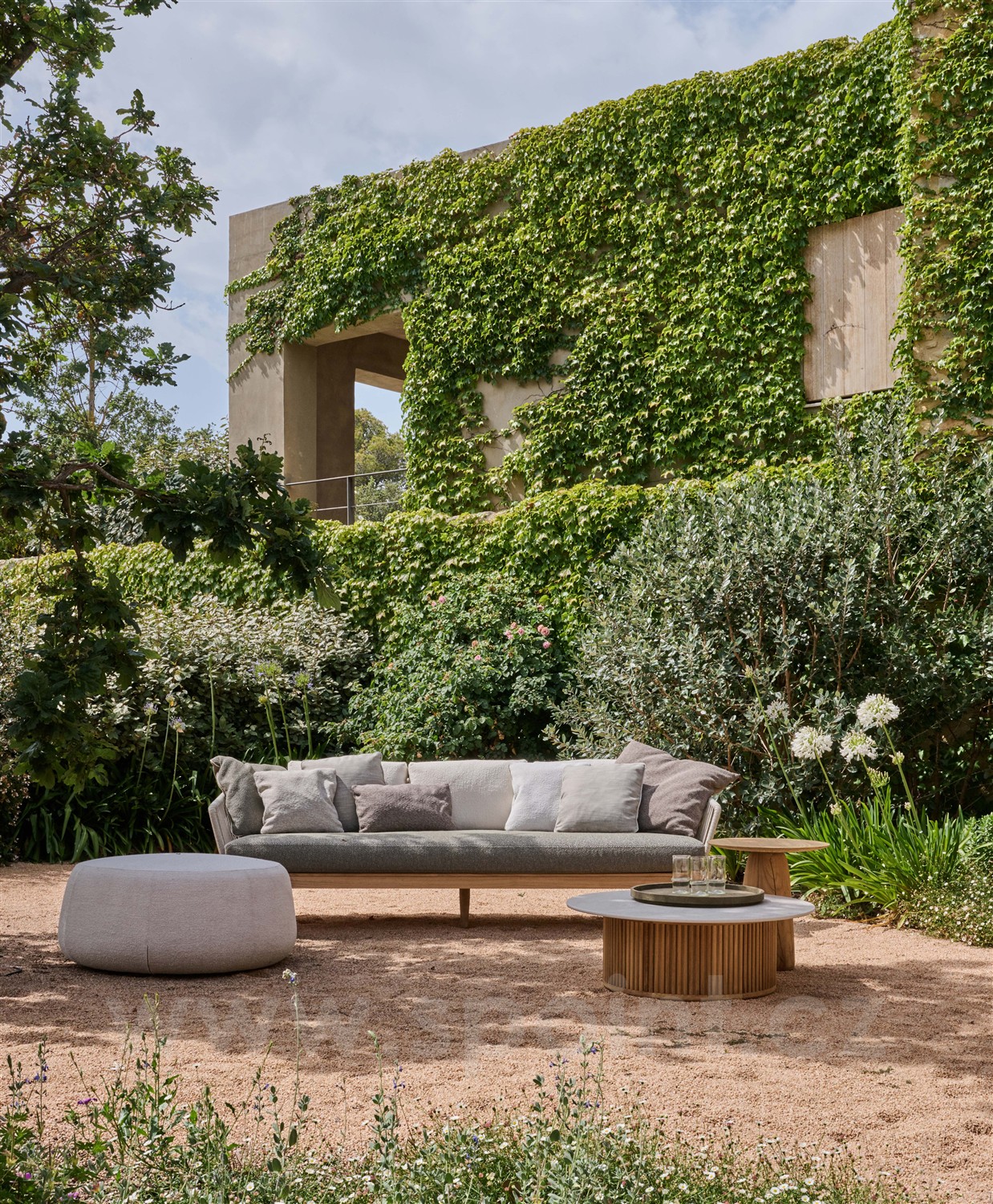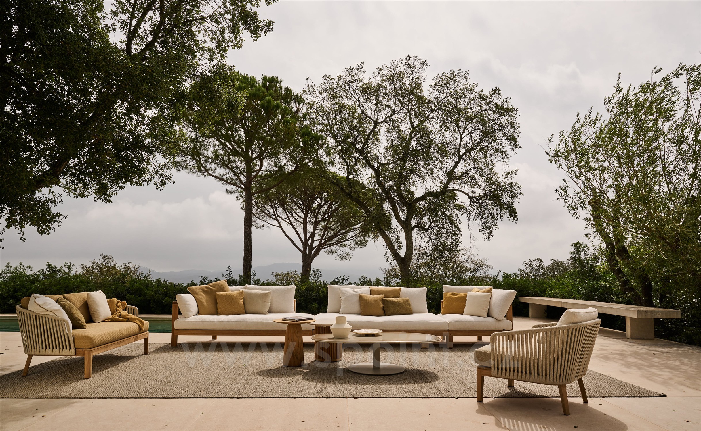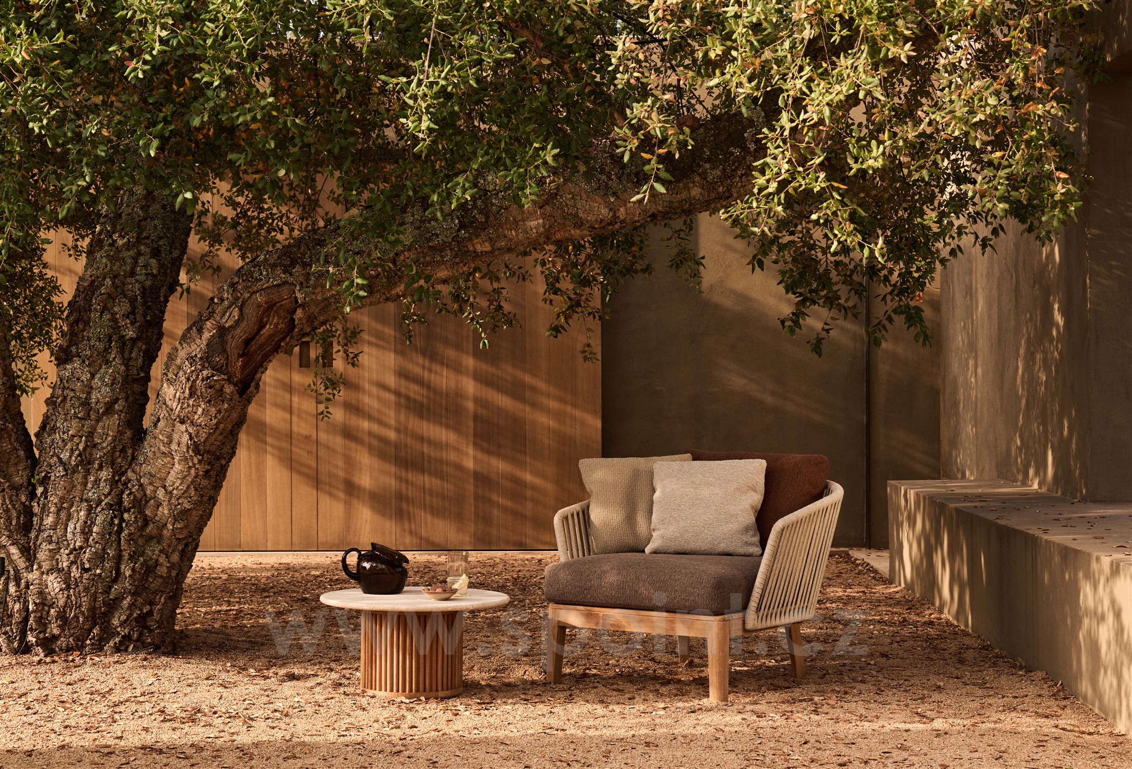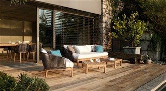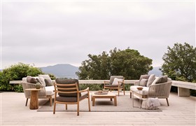 Originální oblíbená Tribú lounge kolekce z teakového dřeva a lankového výpletu.