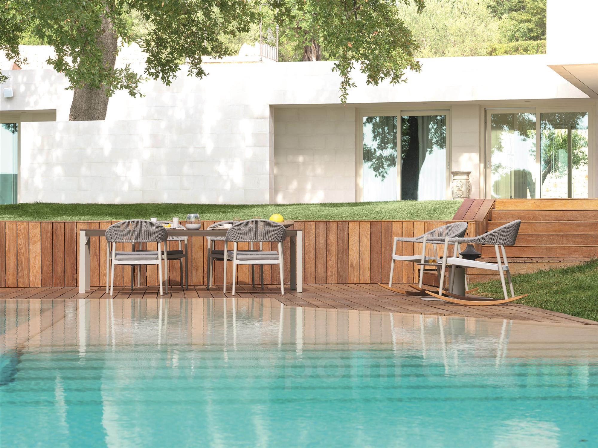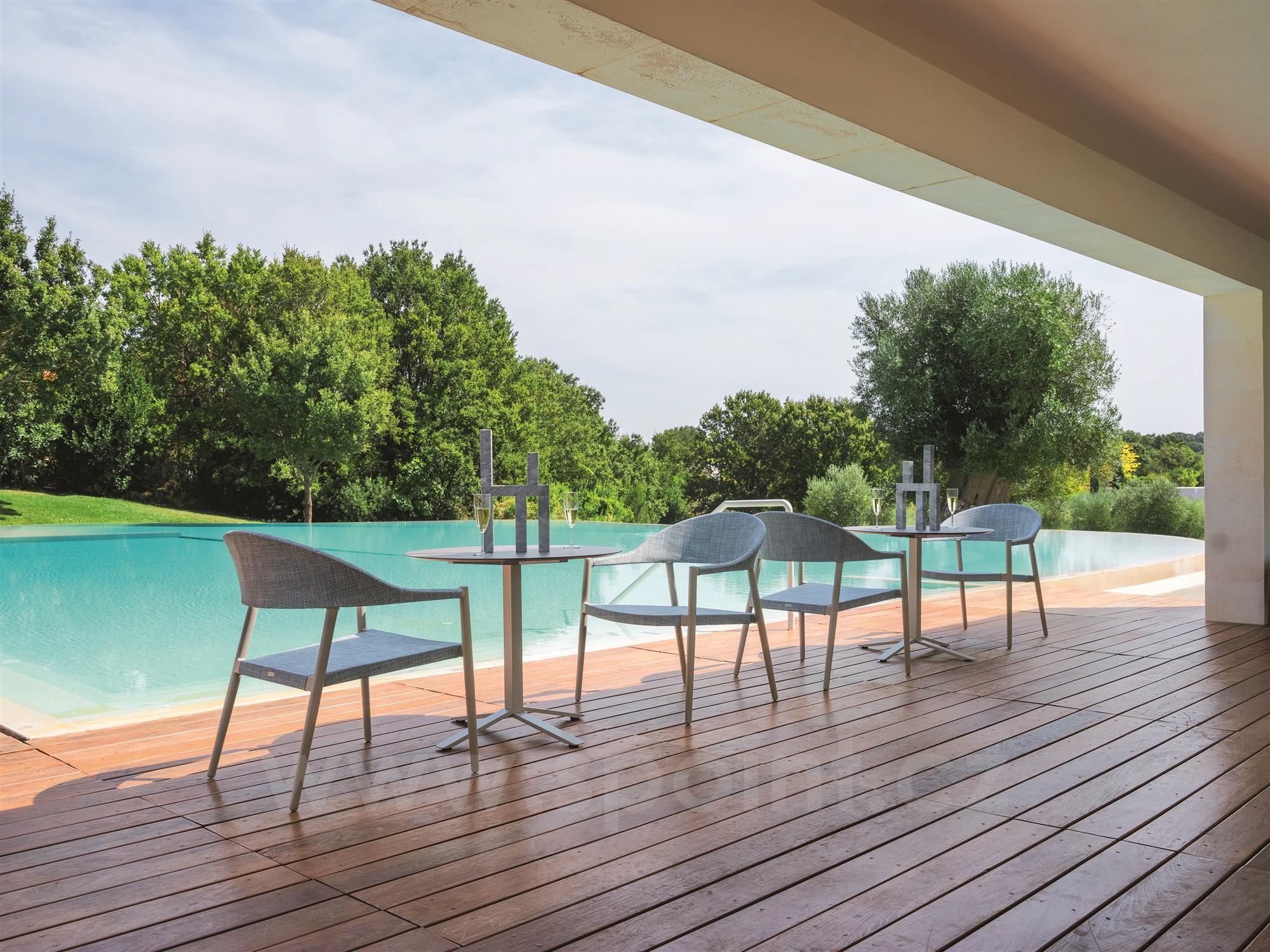Zahradní relaxační křesla lze kombinovat s jídelními křesly ze stejné kolekce Clever.