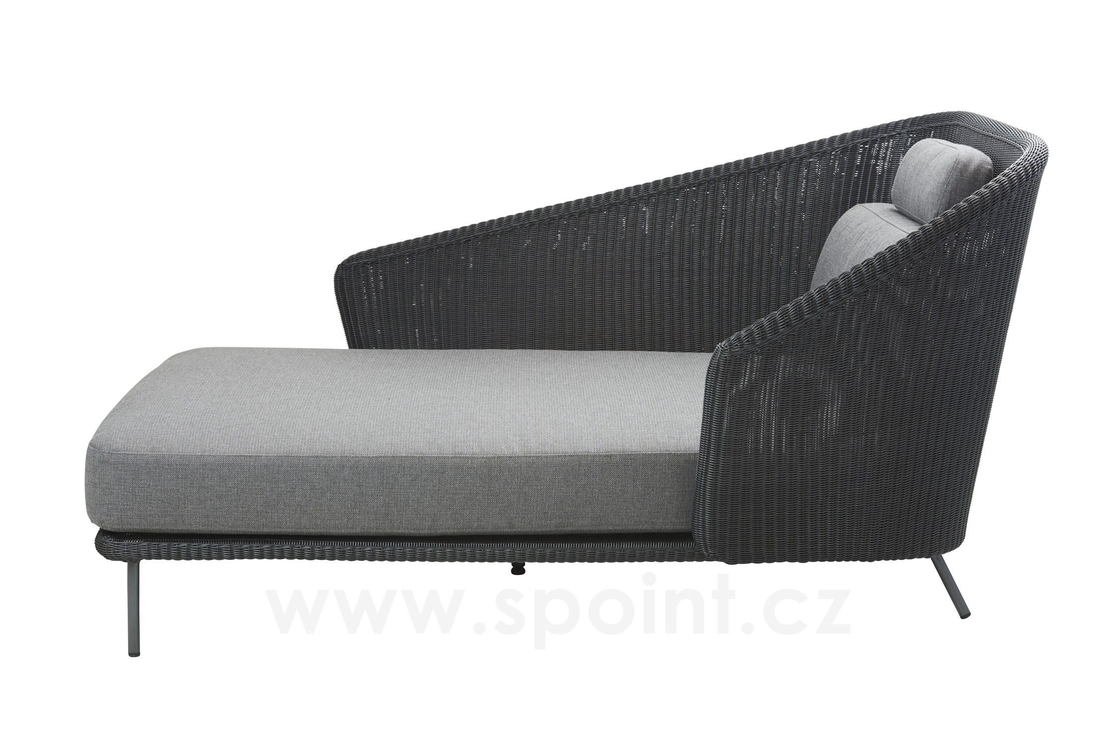 Denní postel/relaxační díl pravostranný Mega, Cane-line, 128x180x91 cm, rám kov, výplet umělý ratan barva graphite, sedáky venkovní látka SoftTouch grey