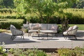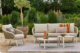 3-místná pohovka Pine Key, Apple Bee, 203x83,5x79 cm, rám hliník Oyster (krémová), výplet umělý ratan Seashell, sedáky venkovní látka Cotton Flower