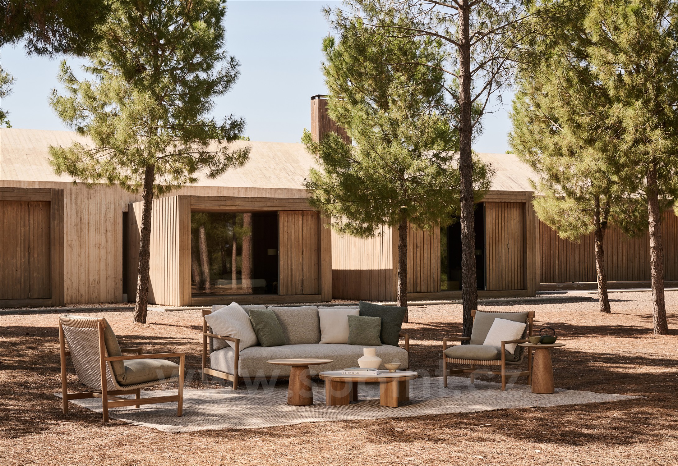 K venkovní pohovce je nutné doobjednat sedák a opěrné polštáře, které nejsou součástí. Sedák a opěrné polštáře jsou z venkovních odolných látek a z rychleschnoucí výplně.