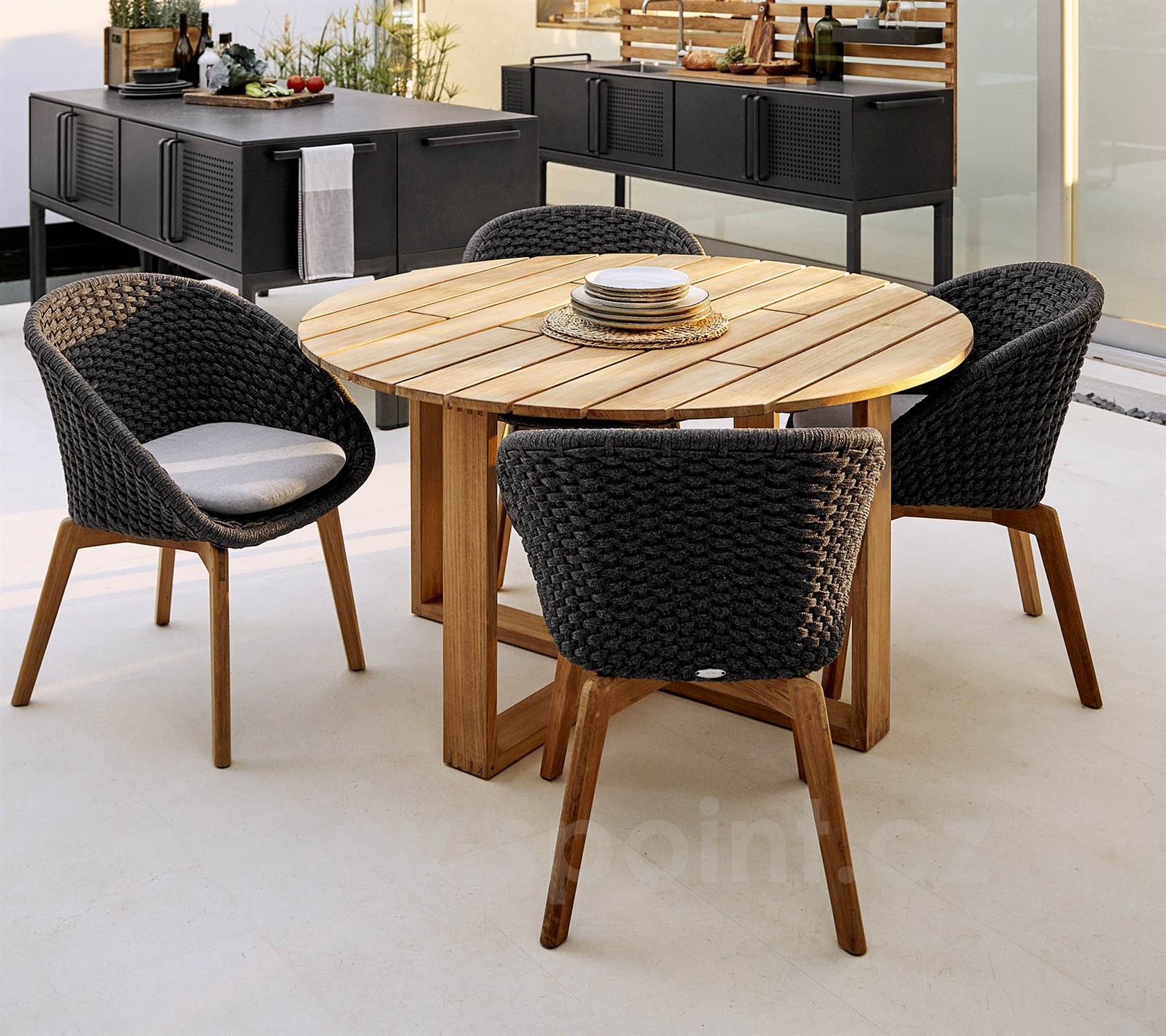 Teakový venkovní jídelní stůl kolekce Endless značky Cane-line.