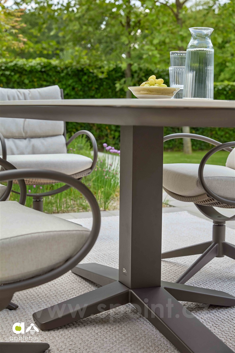 Oválný venkovní jídelní stůl Zanzibar od Apple Bee. Materiály: lakovaný hliníkový rám a kompozitní keramická deska.