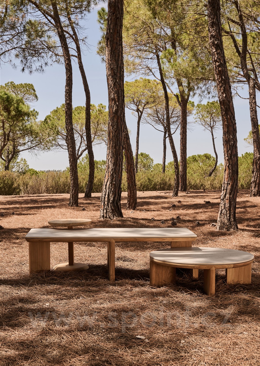 Konferenční stůl Amanu, Tribu, kulatý 125x35 cm, Tribu, rám teak, deska keramika