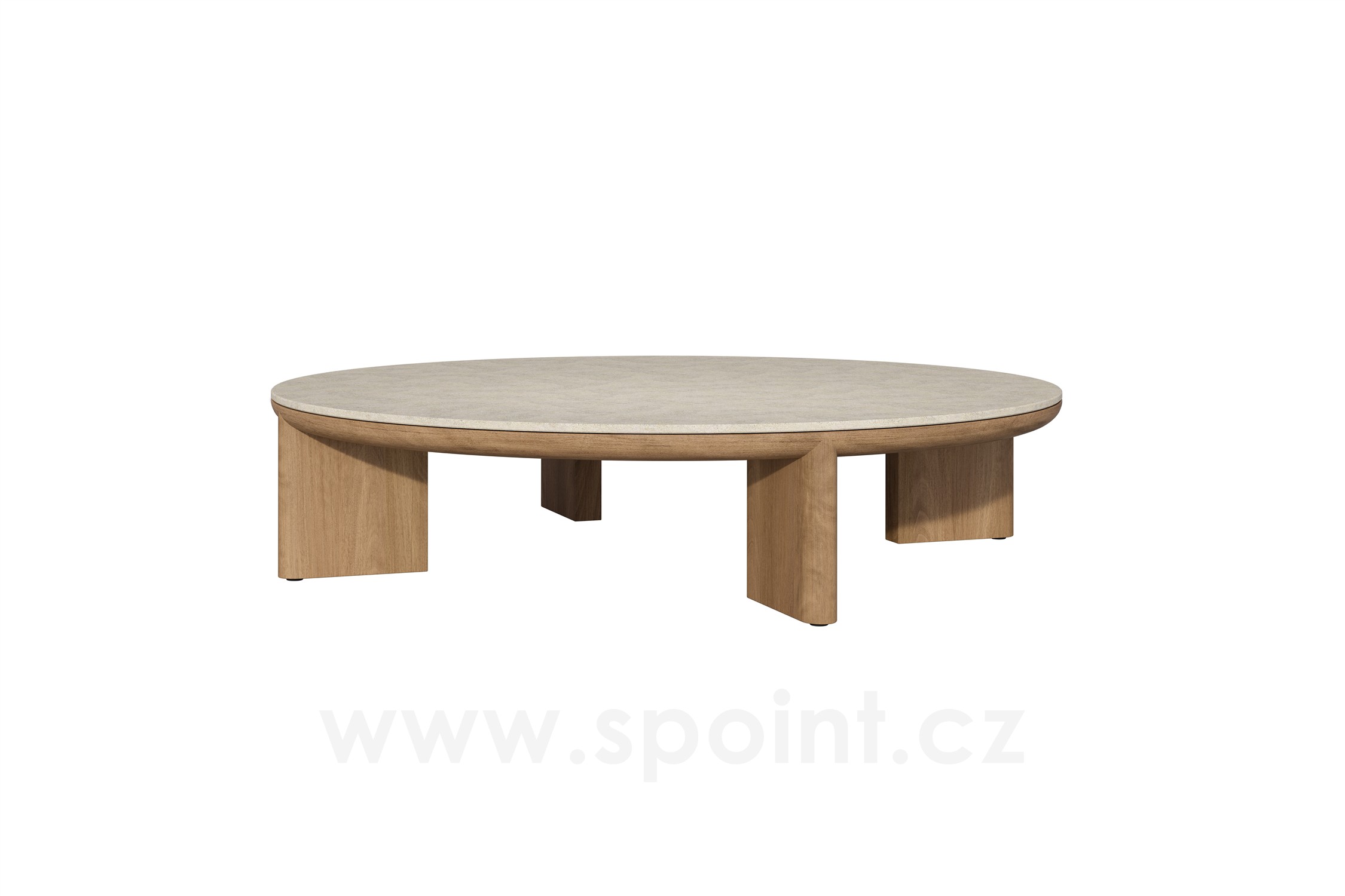 Nízký stolek Amanu, Tribu, kulatý 125x35 cm, rám teak, deska keramika dekor scisto
