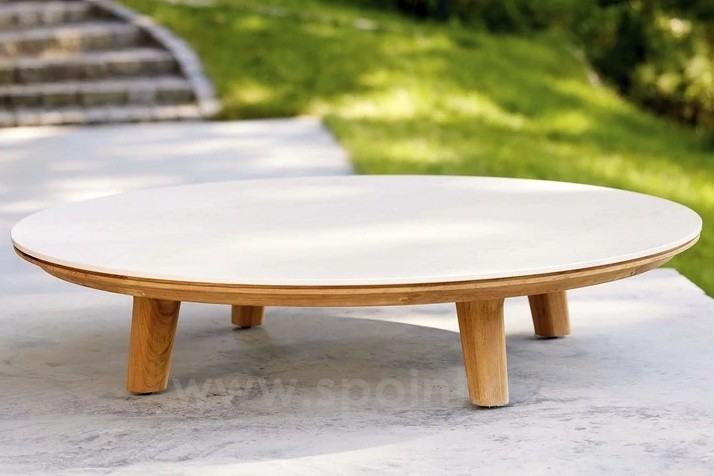 Konferenční stolek Aspect, Cane-line, kulatý 144 cm, teak, deska keramika/sklo
