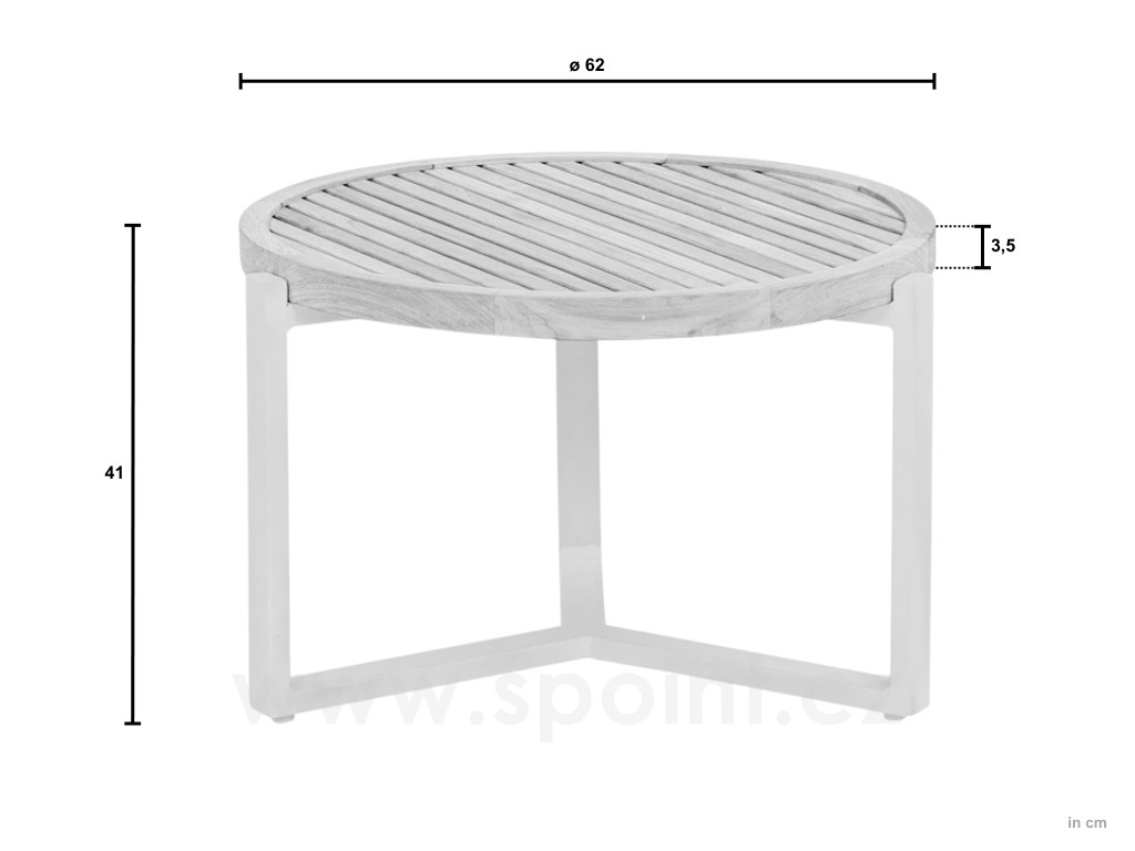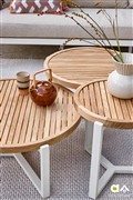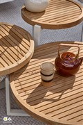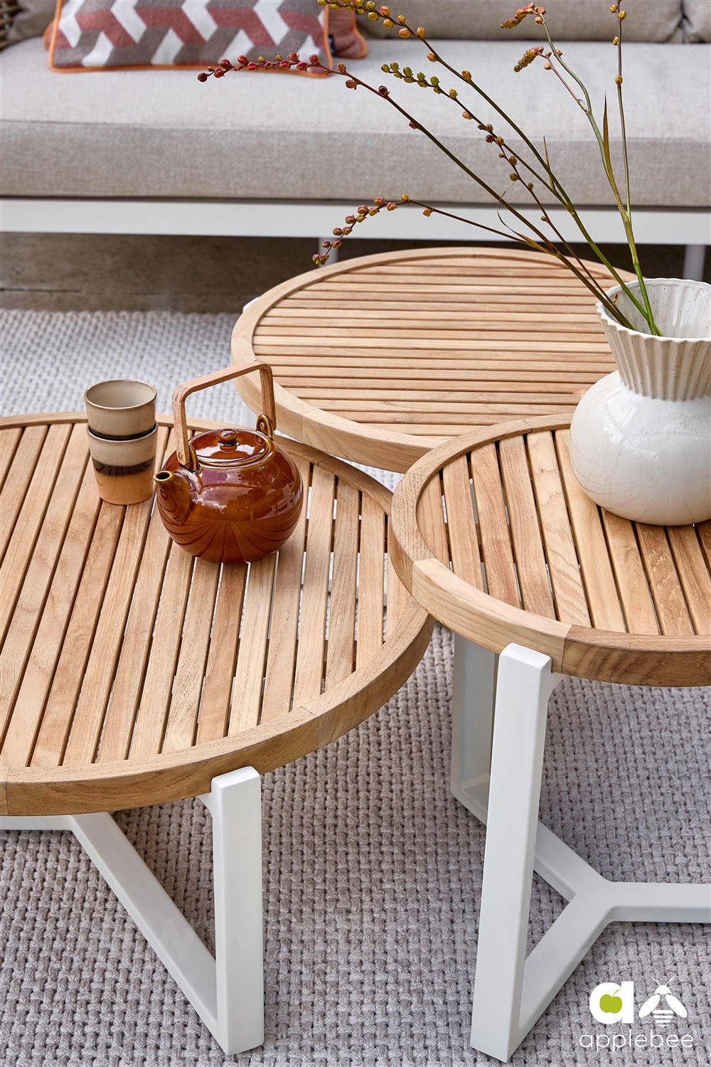 Konferenční stolek Monaco, Apple Bee, kulatý 60x41 cm, rám hliník Oyster (krémová), deska teak