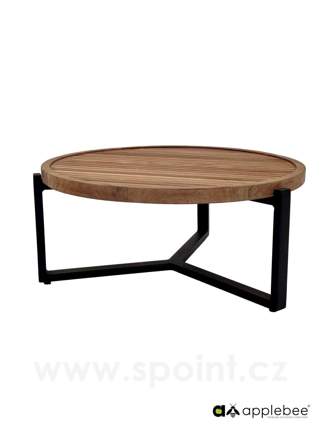 Konferenční stolek Monaco, Apple Bee, kulatý 75x34 cm, rám hliník Black, deska teak Natural