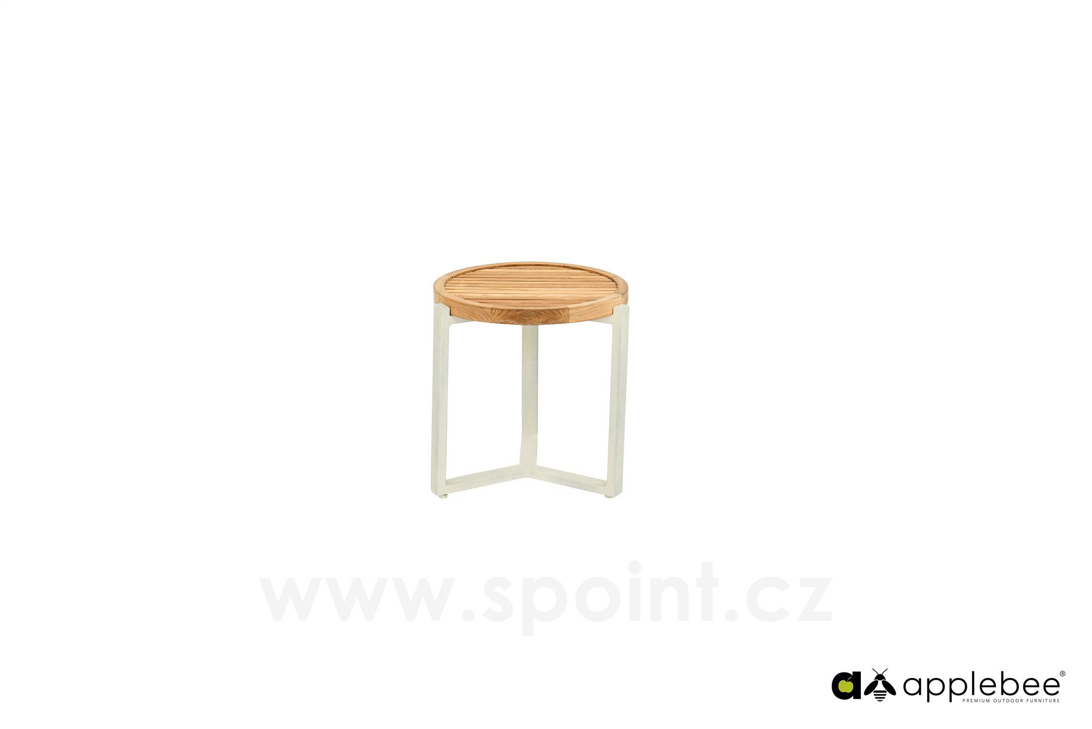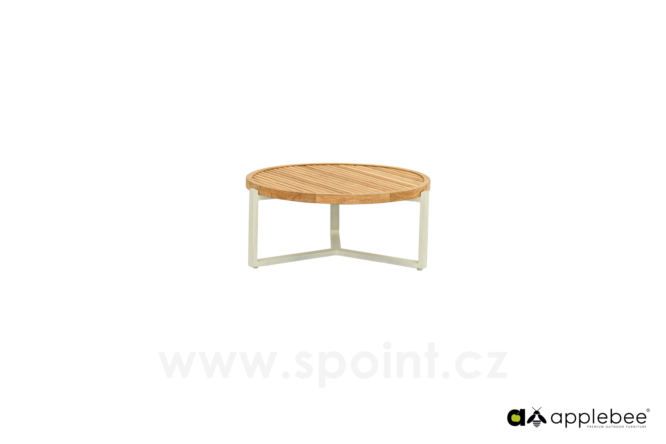 Konferenční stolek Monaco, Apple Bee, kulatý 75x34 cm, rám hliník Oyster, deska teak