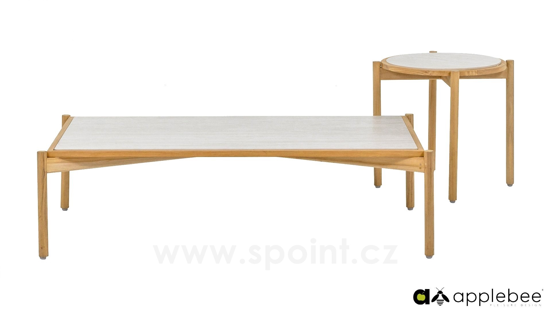 Konferenční stolek St.Lucia, Apple Bee, 128x70x35 cm, rám teak, deska keramika Travertino White
