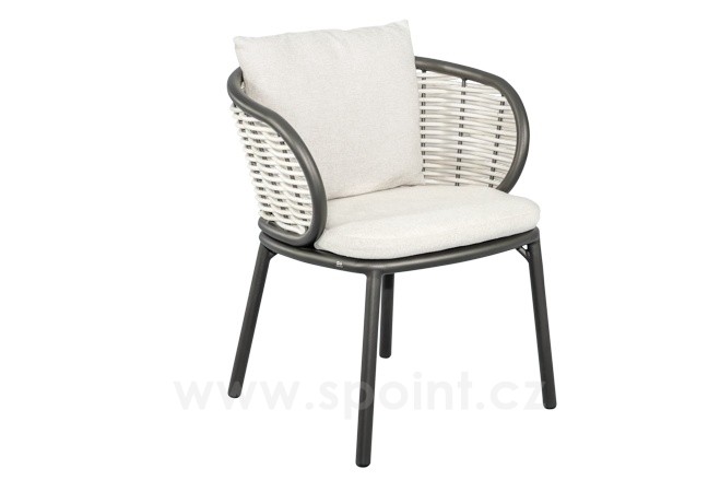 Jídelní křeslo Pine Key, Apple Bee, rám hliník Oyster, proutěný výplet Seashell, sedáky venkovní látka Cotton Flower
