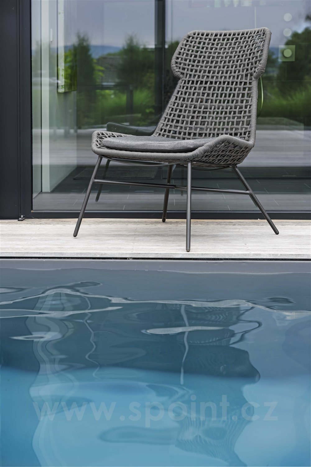 Relaxační křeslo Greta, Stern, 78x84,5x101 cm, rám lakovaný hliník šedočerný (anthracite), lankový výplet šedý (platin), 100% akryl šedá (silk grey)