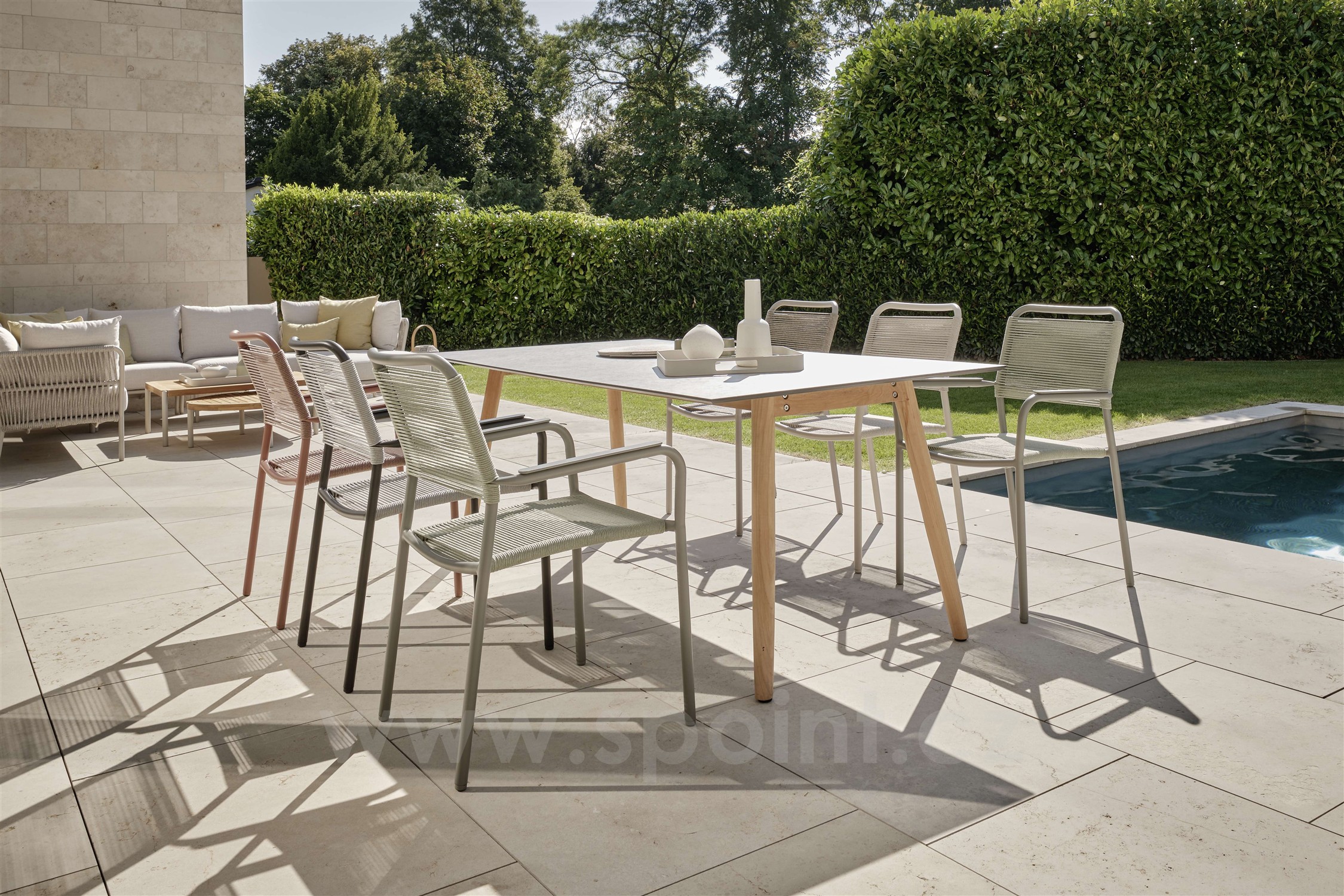 Stohovatelné jídelní křeslo Joris, Stern, 61x59x89 cm, rám lakovaný hliník Pistachio, výplet lanko Pistachio